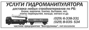 Грузоперевозки гидроманипуляторами на базе МАН 26.410 по Республике Беларусь. Грузоподъемность авто -12 т. Стрела крана до 14 м. Грузоподъемность манипуляторов до 7,5 т. Кузов 2.50х6.50, можно с прицепом 2,50х7,35 м грузоподъемностью 14 т. Оперативно и качественно в любую погоду.